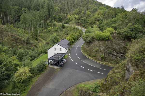 Die Burg Neuerburg liegt auf 250 m Höhe an einer sehr aufragenden Klippe am linken Ufer über dem Fockenbachtal oberhalb der Stadt Neuerburg auf einem Felsgrat.